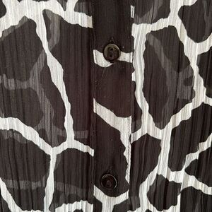 Chico’s Women’s animal print geometric 3/4 sleeve collared button down sheer blouse 1 (8/medium)