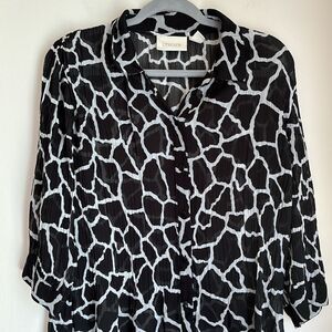 Chico’s Women’s animal print geometric 3/4 sleeve collared sheer blouse 1 small