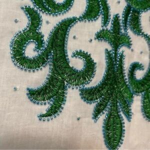 Chico’s Womens embellished tunic green Linen Blend Beaded Blouse Top