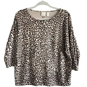 Chicos Womens size 1 8 US M Animal Print 3/4 Sleeves