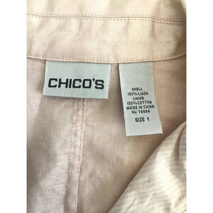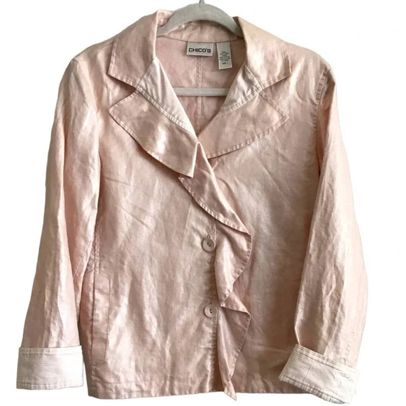 Chico's Womens size 1 US 8 M Soft Pink Button Down Ruffle Linen Jacket
