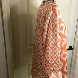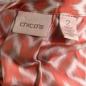 Chicos Womens size 2 Large Blouse Silky Salmon and White Geometric Print