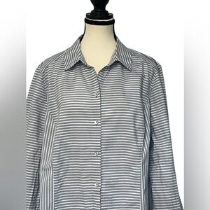 Chico’s Women’s size XL/16 Blue & White Striped button down long sleeve shirt