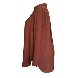 Chico's Women's Brown Pleated Details Button Closure Long Sleeve Shirt Size L