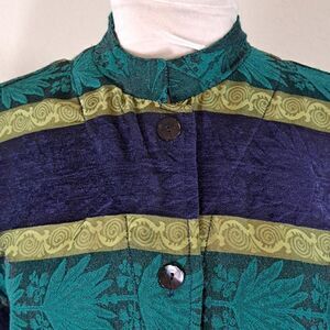Chico’s Women’s Jacket Turquoise Purple Green Stripe Front Button Size 0 =XS 4/6