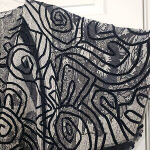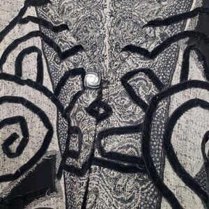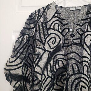 Chicos Womens 100% Wool Black Floral Embroidered Artsy Shawl Cardigan One Size