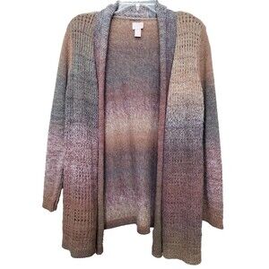 This is a Chico's Wool Blend Multicolor Ombre Open Front Cardigan Sweater Size 2 Large