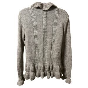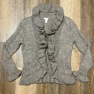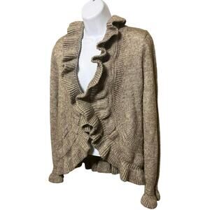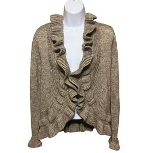 Chicos Wool Mohair Ruffle Knit Cardigan Sweater Size 1 US M Beige Preppy Twee
