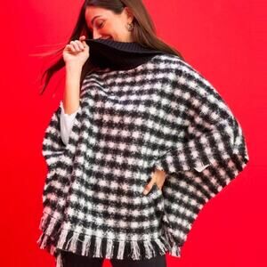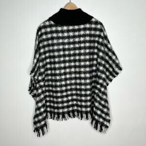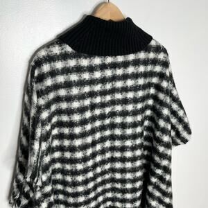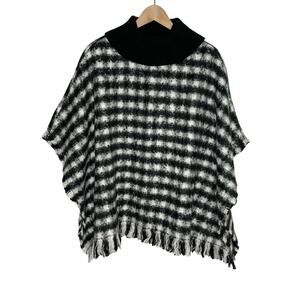 Chicos Woven Knit Poncho Sweater Womens S/M Black White Houndstooth Turtleneck