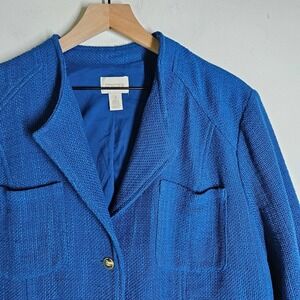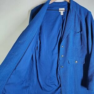 Chico's Woven Tweed Jacket 3 XL/16 Teal Blue Textured Button Front Coat