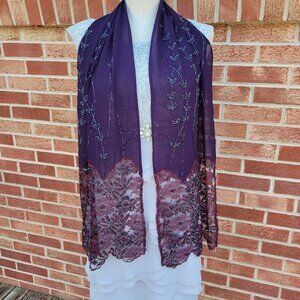 Chico's Wrap Scarf Elegant Beading and Lace Purple and Black