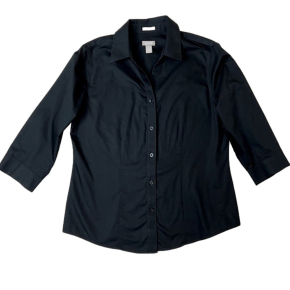 Chico’s Wrinkle Resistant Black 3/4 Sleeve Button Down Shirt - Size 1 (Medium/8)