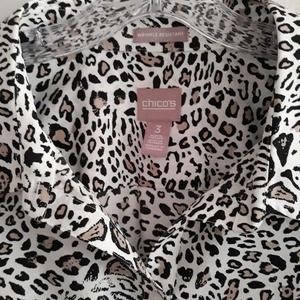 Chico's Wrinkle Resistant Top Blouse Women's Size 3- XL/ 16 Leopard Print Front