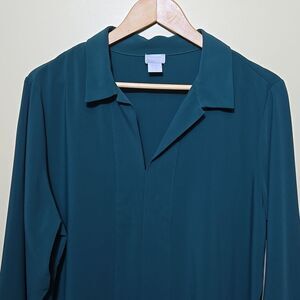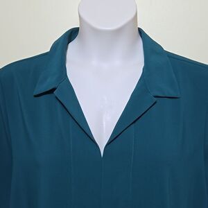 Chico's XL 16 / 18 Tunic Blouse Top Chain Trim Collar Career Jasper Green Classy