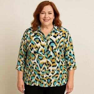 #ChicosStyle #BoldPrintTop #AnimalPrintShirt #WomensFashion #ChicosXL #StatementShirt #ButtonDownBeauty #EUCFinds #PoshmarkStyle #ClosetGoals #ChicosChic