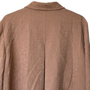 The Chicos XL Textured Jacquard Swing Jacket Coat in size 3 is a stylish and versatile outerwear piece perfect for various occasions. Made of polyester with a solid brown color and tweed fabric type, this coat features a button closure and pleated accents for added flair. Ideal for travel, casual, or business settings, this classic overcoat offers both comfort and sophistication during the winter, fall, or spring seasons. The XL size and regular fit make it a great choice for women looking for a fashionable and practical coat from the trusted brand Chico's.
