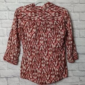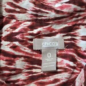 Chicos XS Size 4 Red Ruched Front Long Sleeve Button Front Blouse Size 4