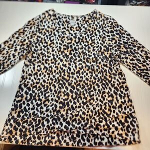 Chicos Xl Animal Print Brown 3/4 Sleeve Blouse
