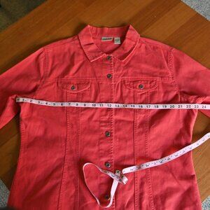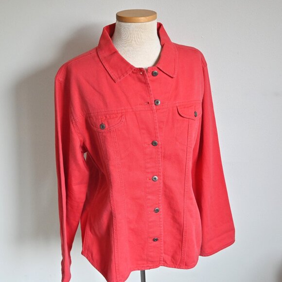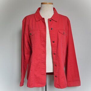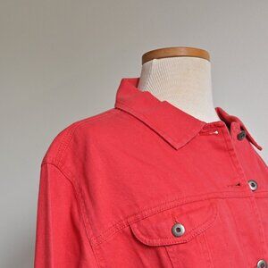 Chico's Y2K 90s Retro Biker Front Button Classic Fit Red Denim Jean Jacket Sz 3