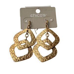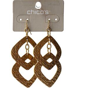 Chicos Y2K Gold Geometric Dangle Earrings Textured Linked Shapes Statement Style