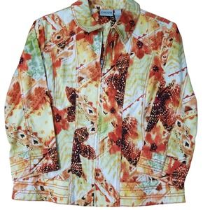 Chico's Yellow & Orange Floral Zip Up Crop Jacket Size 0 (XS) 81320-0463