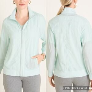 Chico's ZENERGY Mesh-Inset Lightweight Athleisure Jacket Aqua Haze Sz 3 (16/18)