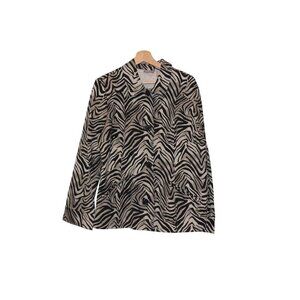 This Chico's zebra print jacket offers a bold, eye-catching design suitable for both casual and professional settings. The button-up style provides a classic touch, while the animal print adds a modern flair. Crafted for comfort and style, it makes a versatile addition to any wardrobe.