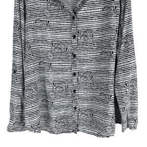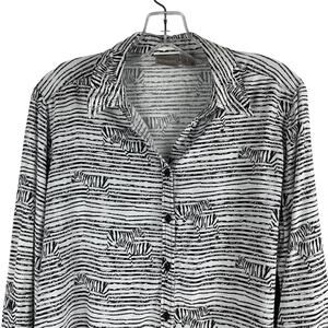 Chico's Zebra Stripe Printed Button Front Shirt Black White