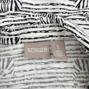 Chico's Zebra Stripe Printed Button Front Shirt Black White Size 1/ M
