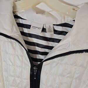Chico’s Zenergy 3 Women’s Quilted Vest Full Zip Pockets White Striped lining XL