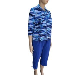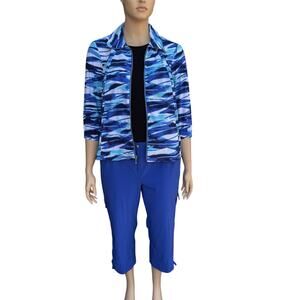 Chico's Zenergy 3 XL 16 Travel 2 Piece Set Blue Wave Jacket Capri Cargo Pants