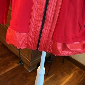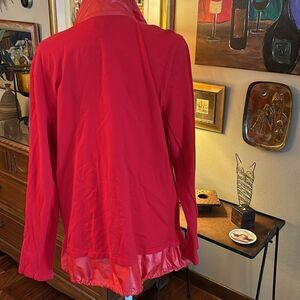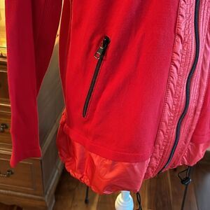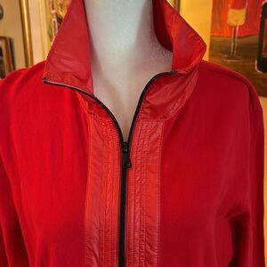 EUC. Zenergy by Chico's Becca Red Fabric Mix Zip-Up Jacket - Size 2, Large. Cotton/Nylon. Drawstring hem; zipped slant pockets.