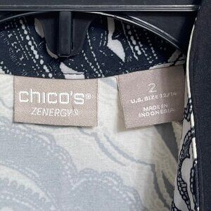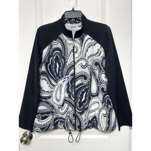 Chico's Zenergy Black & White Paisley Print Zip-Up Sport Jacket Size 2 / US 12/