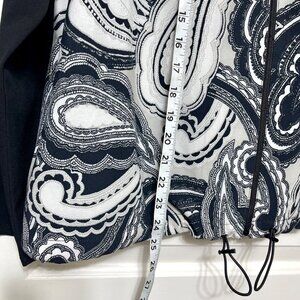 Lightweight and stylish, this Chico's Zenergy jacket features a bold black and white paisley print. Adjustable hem for a customizable fit.