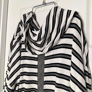 Chic hooded top with black and white stripes. Ideal for relaxed outings. 96% Rayon 4% Spandex