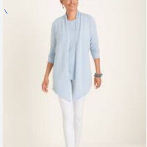 Chico's Zenergy Blue Draped Ribbed Waterfall Open Modal Blend Cardigan 1/US 8-10