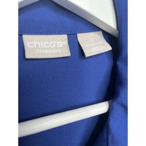 Chico’s Zenergy Blue Zip Jacket Size 1 M Travel Stretch Perforated Roll Tab