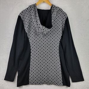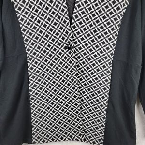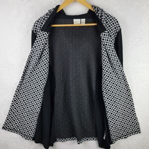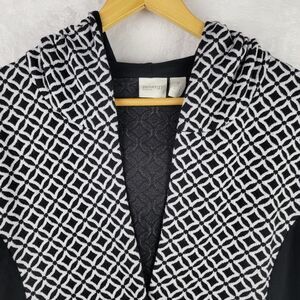 Chicos Zenergy Cardigan Knit Hooded Size Large Button Black White Design