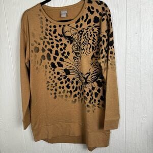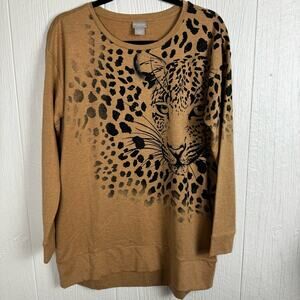 Chico's Zenergy Cheetah Print Head Face Sweater Size 1 or U.S. 8/10 Crew Neck