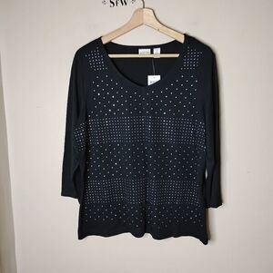 Chico’s Zenergy Erica Top L Black Sparkle 3/4 Sleeve Modal NEW