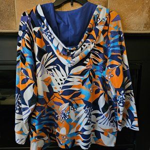 Chico's Zenergy Floral Hooded Jacket Orange, Blue, Turquoise, and White
