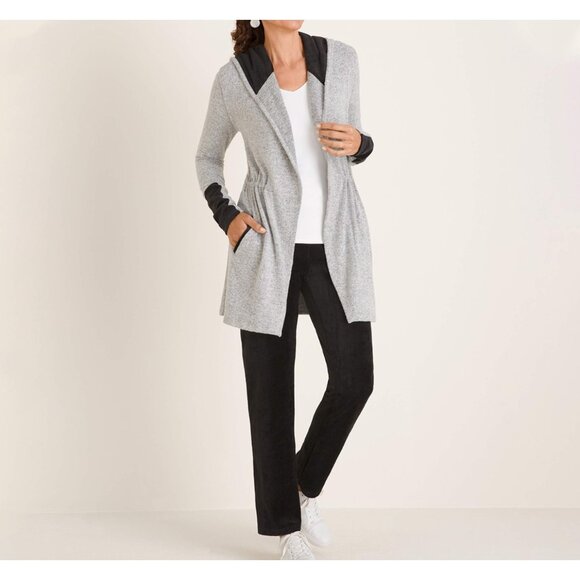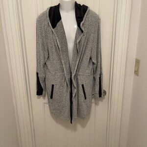 Chicos Zenergy Gray & Black Hooded Open Front Cardigan Jacket Women’s 3, 16-18