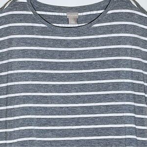 Chico’s Zenergy Grey and White Striped Short Sleeve shirt Women’s 12 /14