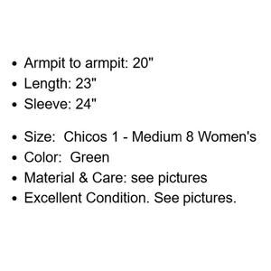 Chicos Zenergy Jacket 1 Womens Medium 8 Green Track Cargo Utility Full Zip