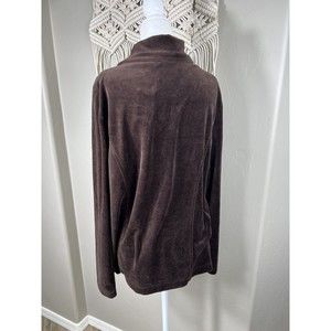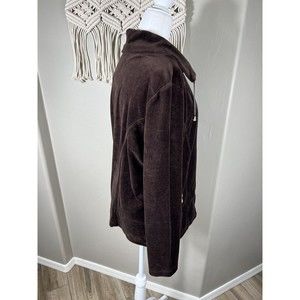 $129 Brand new with tags Zenergy by Chicos chocolate brown velour full zip jacket, zip front pockets, with gold zippers and rhinestone accent on zipper pulls.