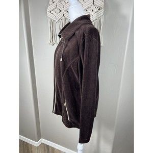 Chicos Zenergy Jacket Brown Velour Zip Front Coat Pockets Sz 2 Large NWT $129