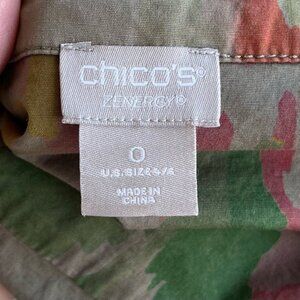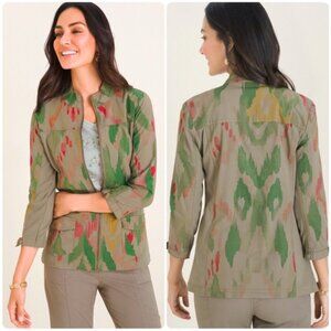 •Chicos• Zenergy Lightweight Olive Ikat Utility Jacket - Size Small
