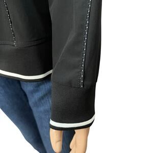 Windbreaker jacket from Chicos Zenergy. Pin dot print. Has front pockets. Full zip. Lightweight.
