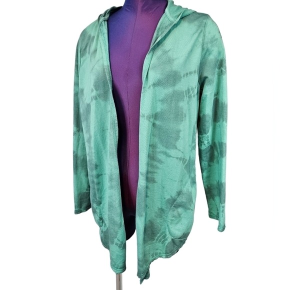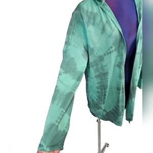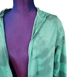 In excellent condition Chico's Zenergy Pima Cotton Tie Dye Astro Green Hooded Cardigan Size Small.