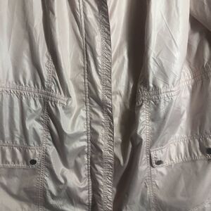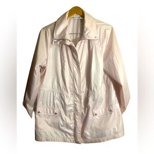Chico’s Zenergy pink novelty jacket with roll tab sleeves. Jacket has full zip and snap closure. Front pockets. Hidden drawcord at waist inside jacket. Like new condition. Measures 23” ptp and 28” shoulder to hem. Size 2 which equals US 14. 100% Polyester